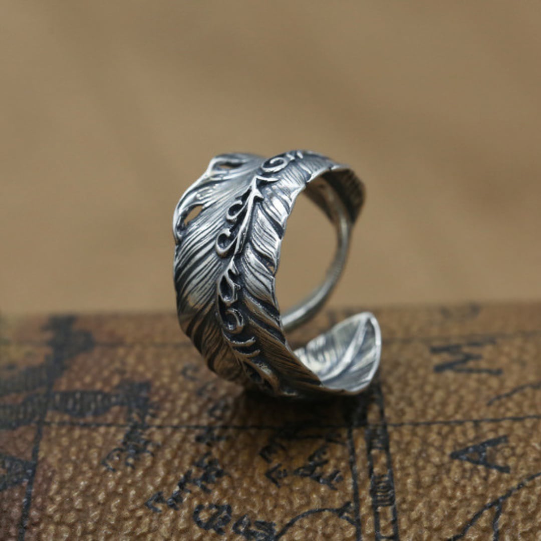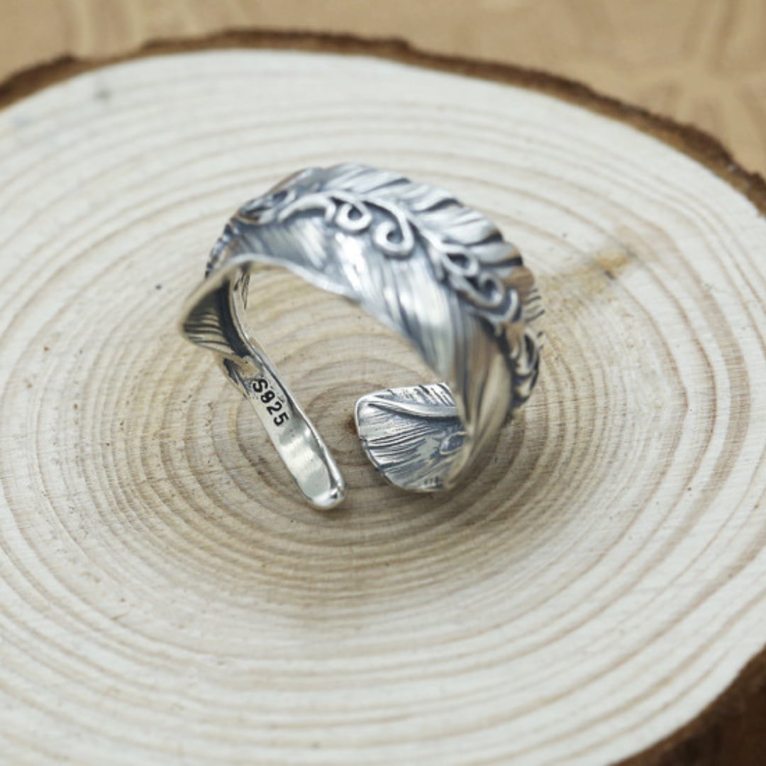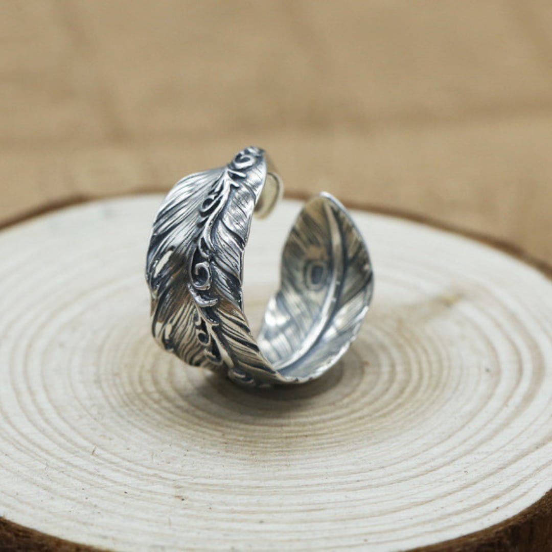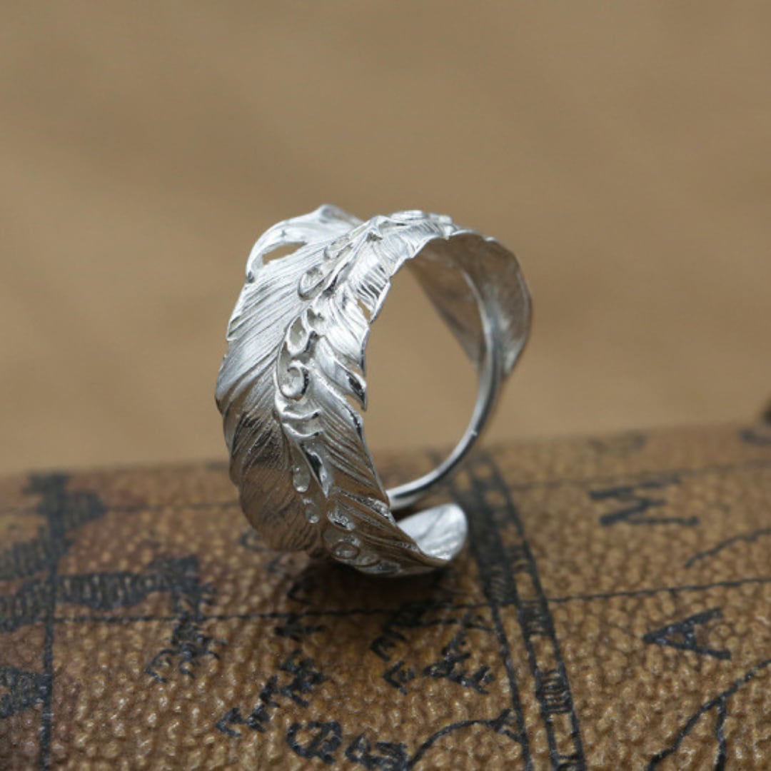 S925スターリングシルバー 調節可能なスタイル ファッションフェザー リング